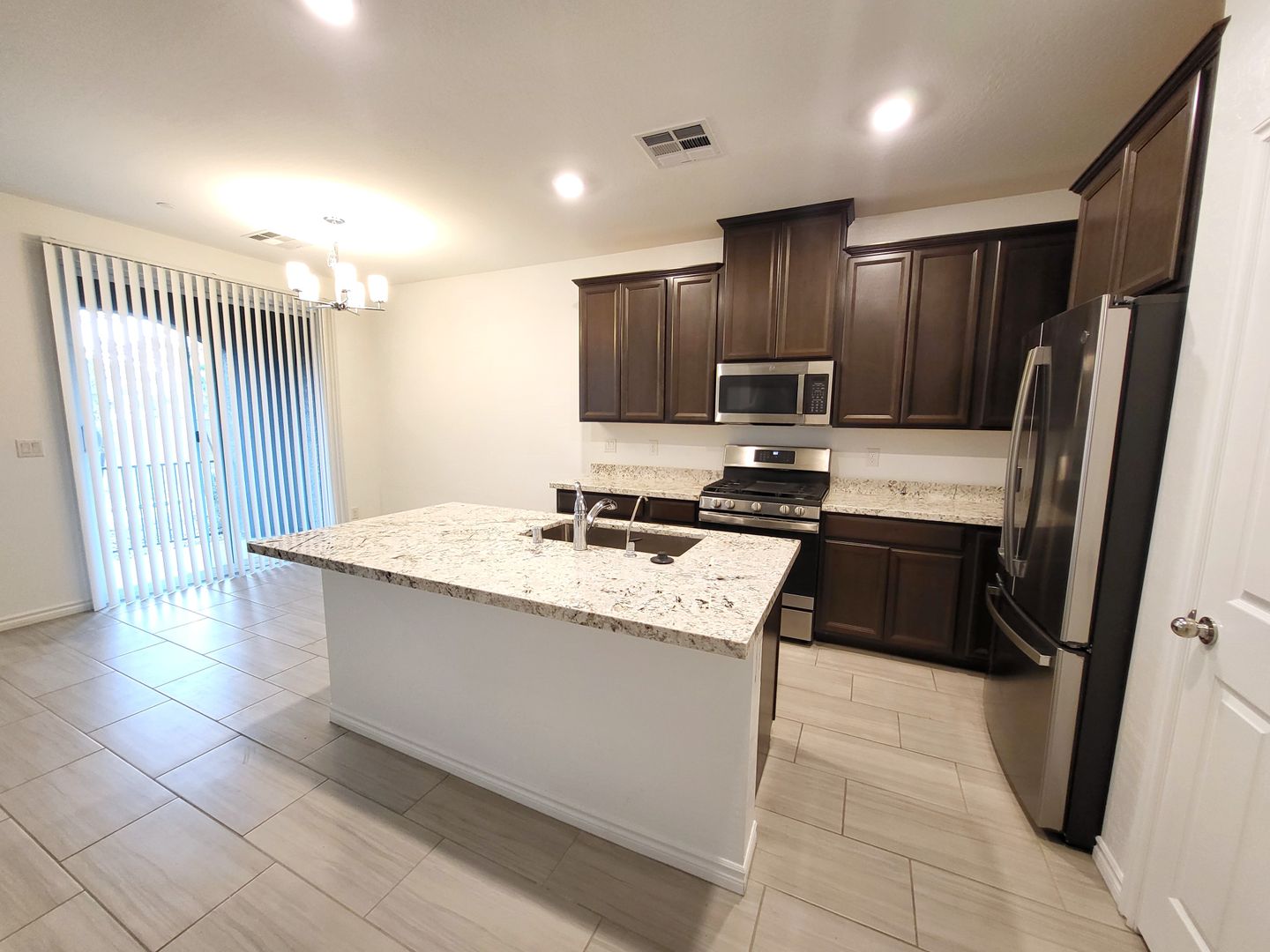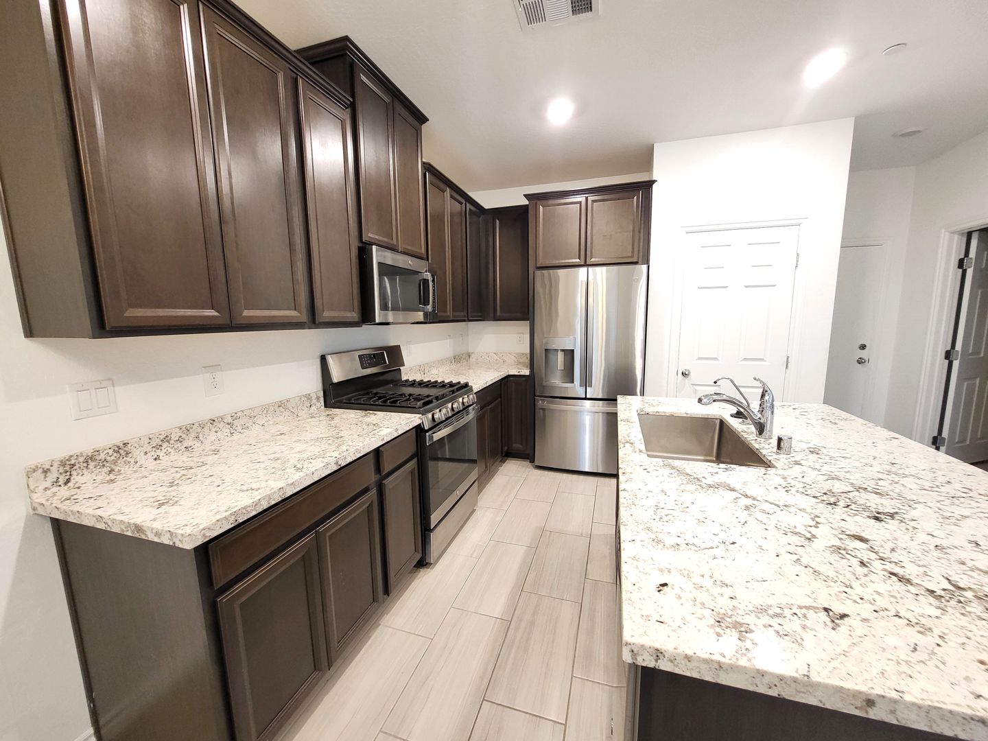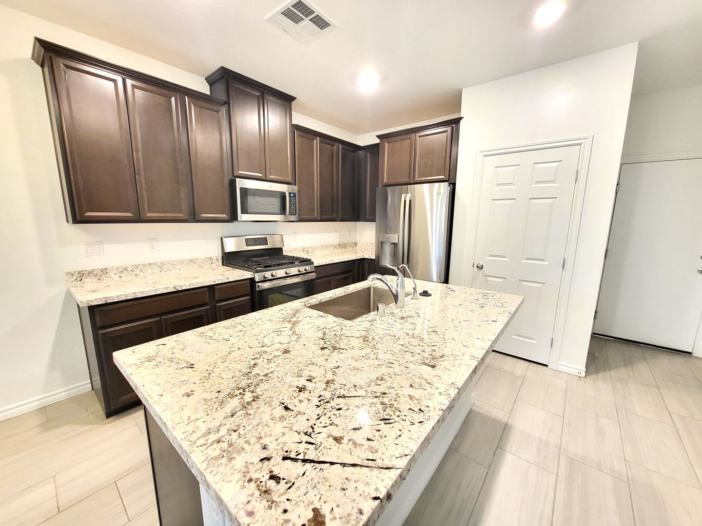 Welcome to this stunning 3-bedroom, 2.5-bathroom, 2-story home located off Las Vegas Blvd. This upgraded property is nestled within a gated community that boasts a refreshing community pool. The home features a spacious 2-car garage and a covered patio, perfect for enjoying the Nevada weather. Inside, you'll find a well-appointed kitchen complete with a pantry, an island, stainless steel appliances, and sleek quartz countertops. The downstairs area is adorned with durable tile flooring, while the second floor is carpeted for comfort. The primary bedroom is a true retreat, featuring a walk-in closet and an en-suite bathroom with a garden tub and separate shower. Experience the perfect blend of luxury and convenience in this Las Vegas gem. Contact us today for a showing!