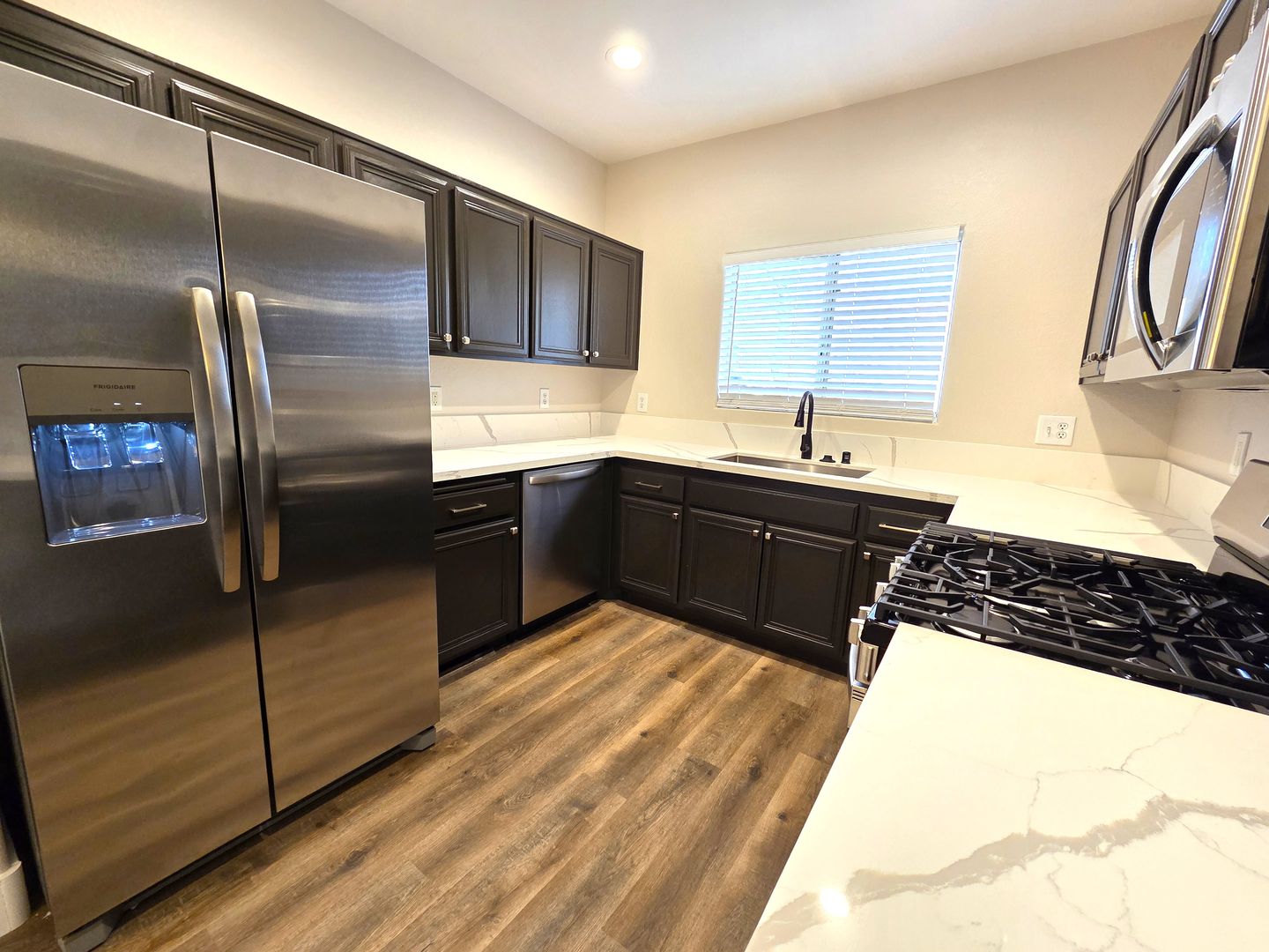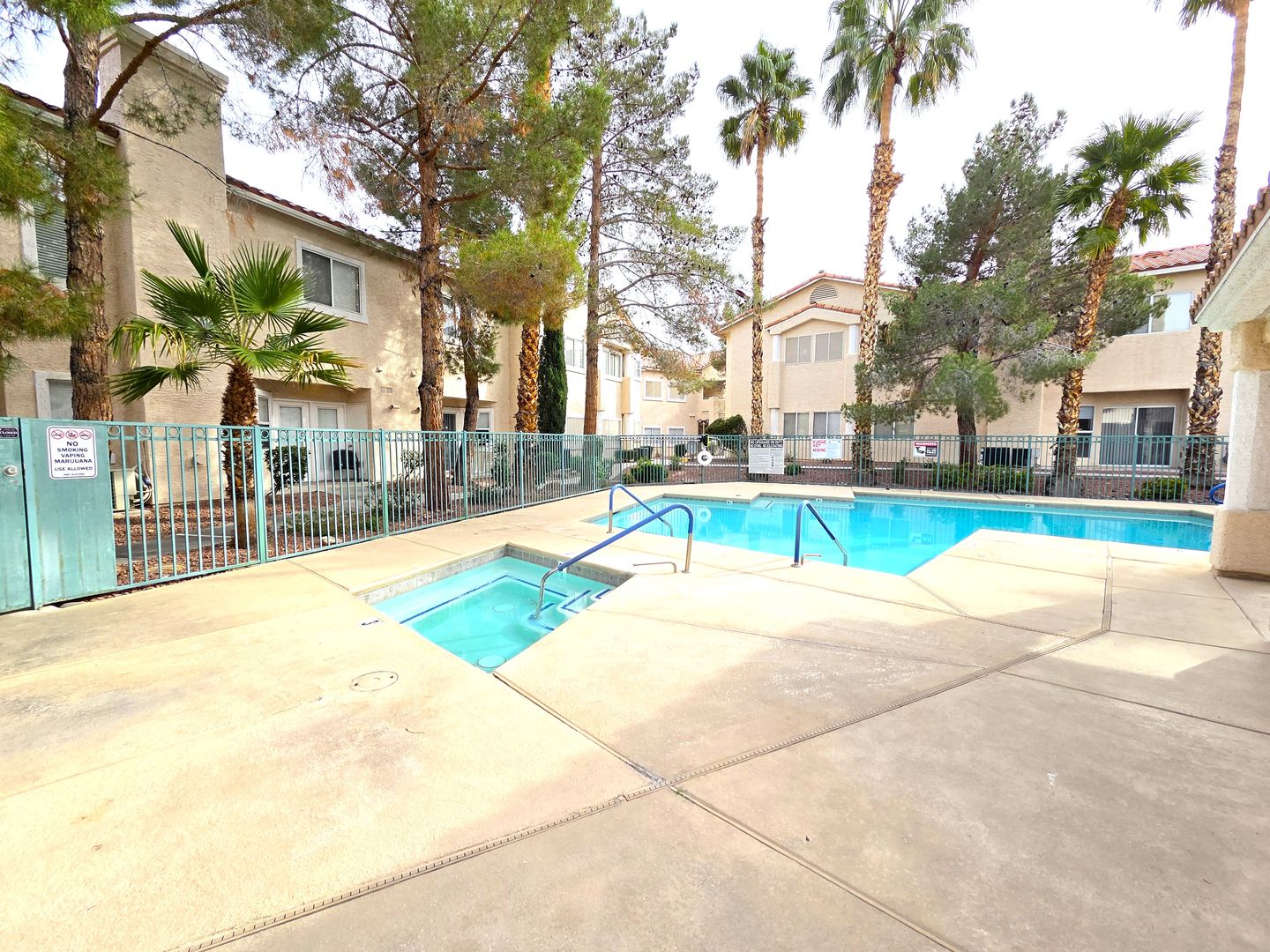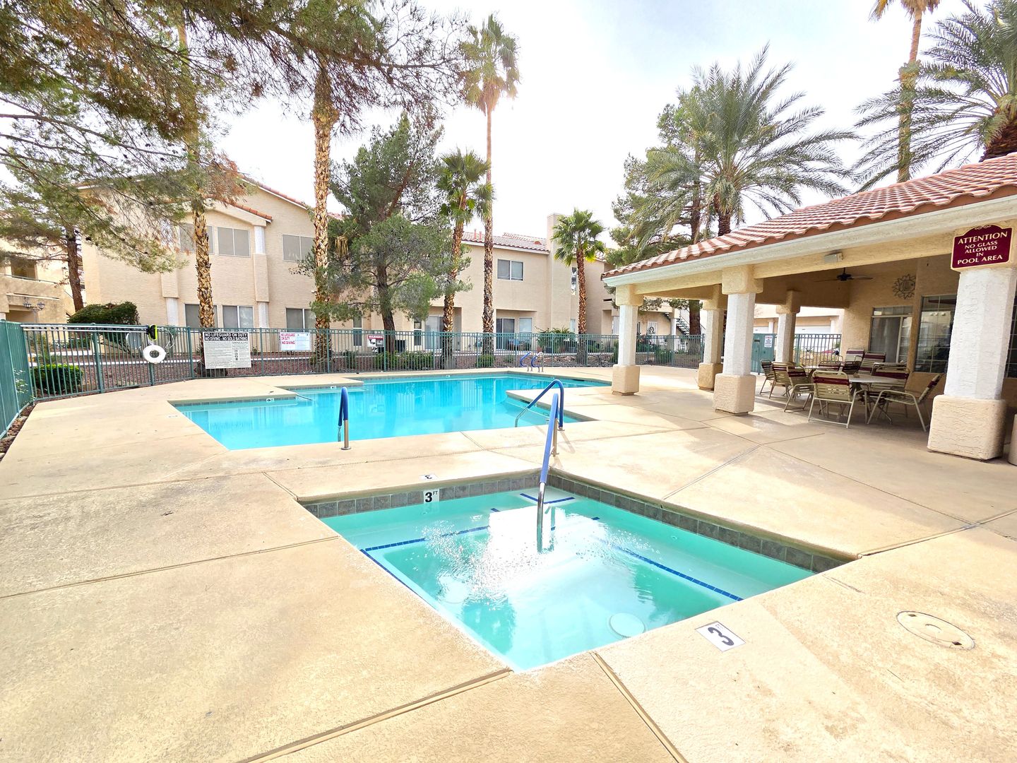 Welcome to this stunning 2-bedroom, 2-bathroom Condo located in the heart of Las Vegas, NV. This 2nd floor unit is nestled within a secure gated community, offering peace of mind and a sense of security. The home has been newly renovated, boasting brand new laminate flooring that adds a touch of elegance to the space. The kitchen is equipped with modern stainless steel appliances, ready to inspire your inner chef. The primary bedroom features a spacious walk-in closet and a private patio, perfect for enjoying your morning coffee or winding down in the evening. The living room also opens up to a patio, providing an additional outdoor space. The home comes with a 1-car garage, offering convenience and storage. As a resident, you'll have access to the community pool and gym, promoting a healthy and active lifestyle. The gas fireplace adds a cozy touch, making this home a comfortable retreat. Experience the perfect blend of style, comfort, and convenience in this beautiful home.